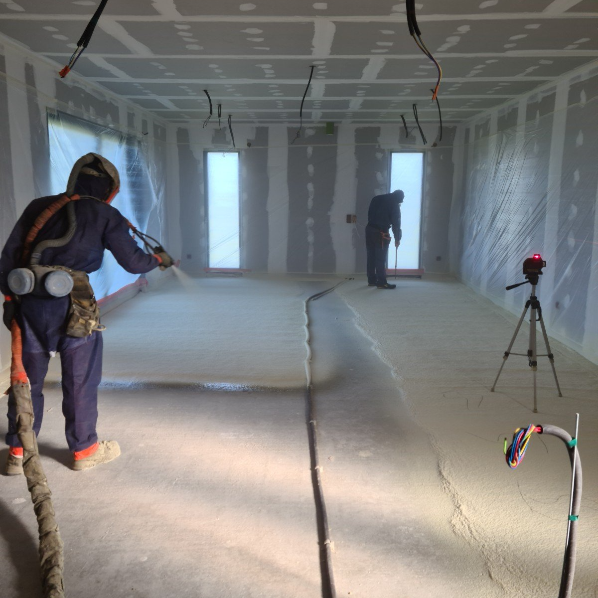 La mousse polyuréthanne projetée est un matériau innovant et performant, garantissant une isolation thermique parfaite pour vos sols ainsi que les murs et combles.